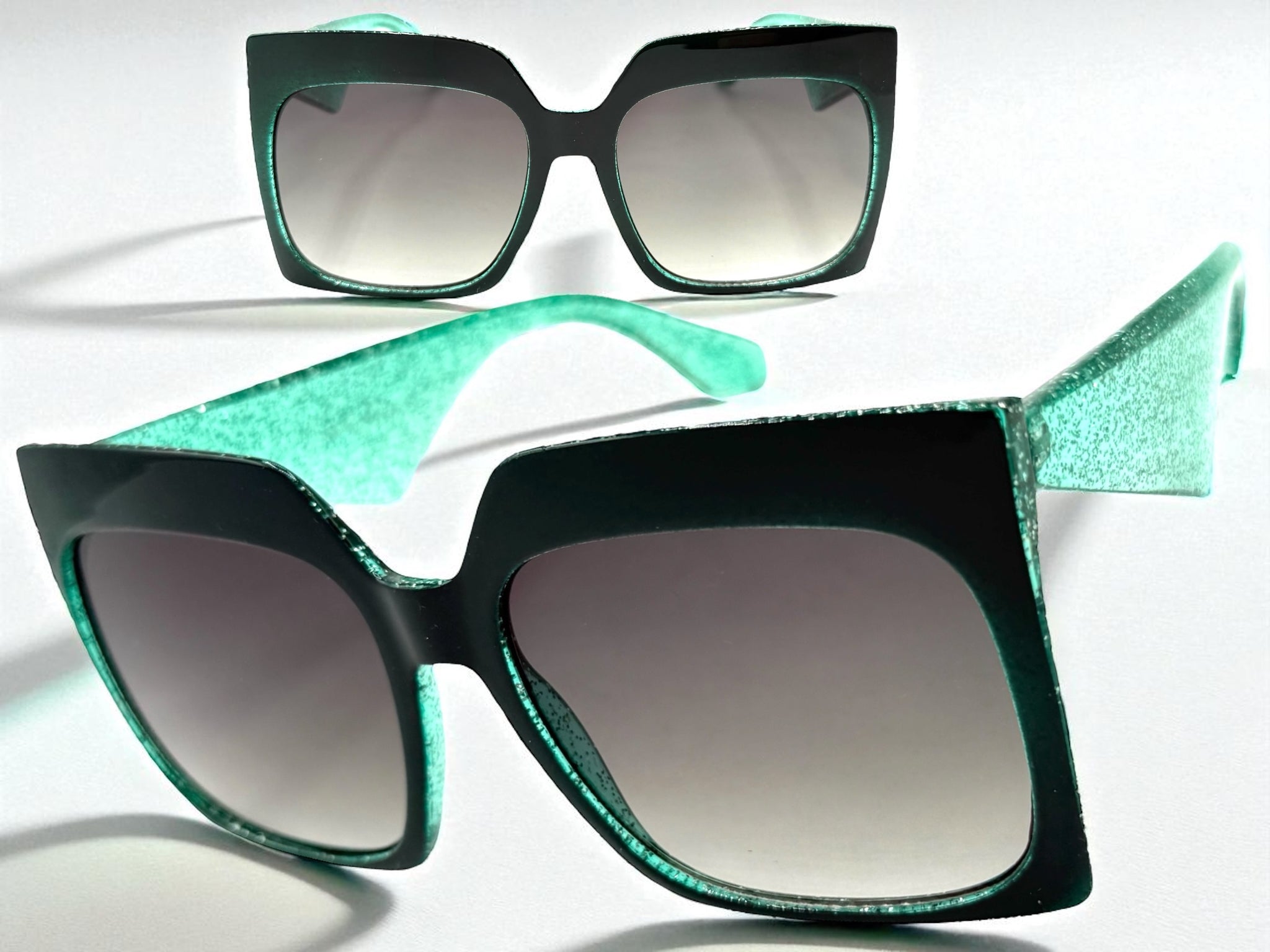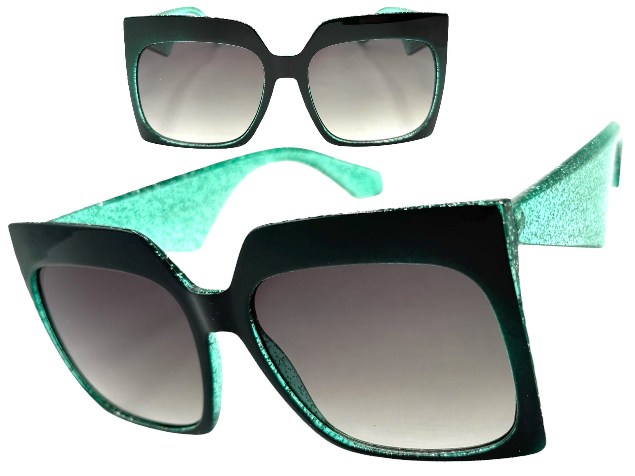 Oversized Exaggerated Vintage Retro Style SUNGLASSES X-Large Square Teal Green Frame 49308