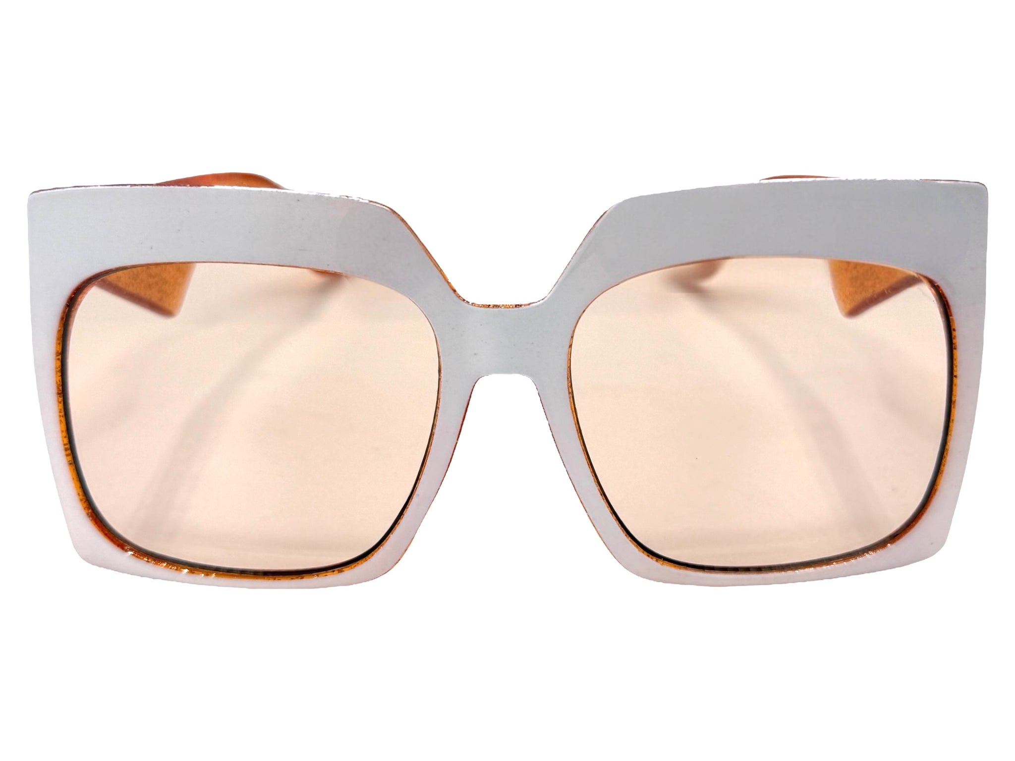 Oversized Exaggerated Vintage Retro Style SUNGLASSES X-Large Square White Frame 49308