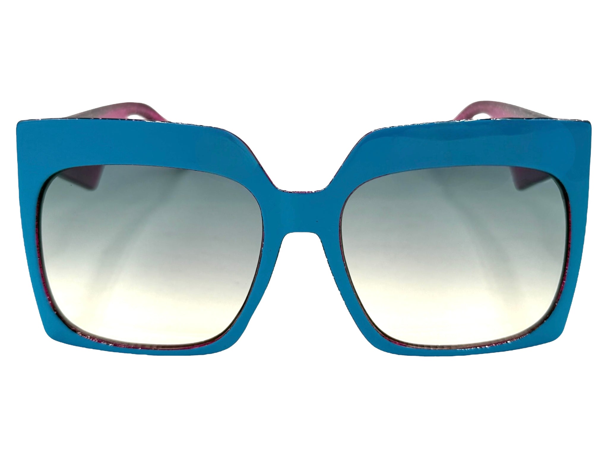 Oversized Exaggerated Vintage Retro Style SUNGLASSES X-Large Square Blue Frame 49308