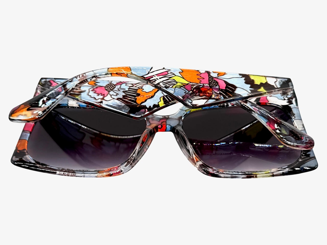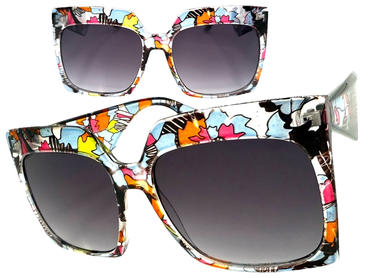 Oversized Exaggerated Vintage Retro Style SUNGLASSES X-Large Square Floral Frame 49308